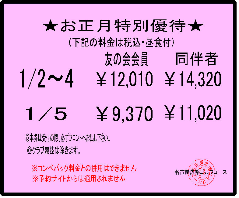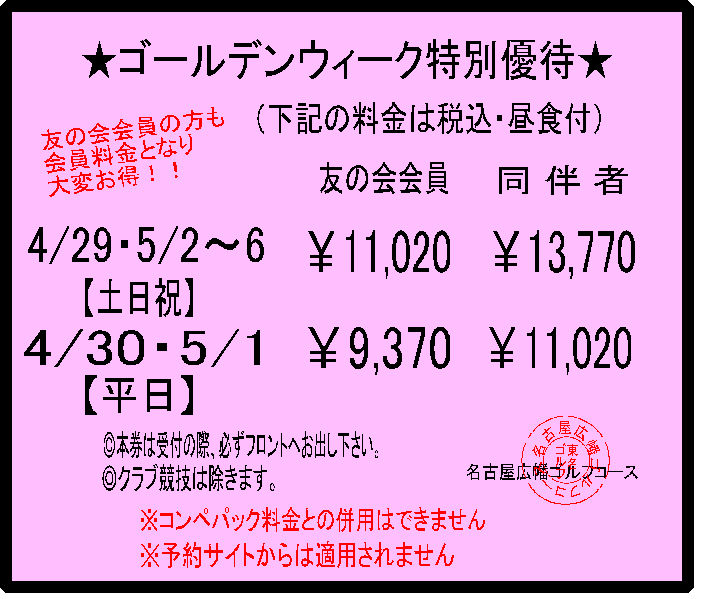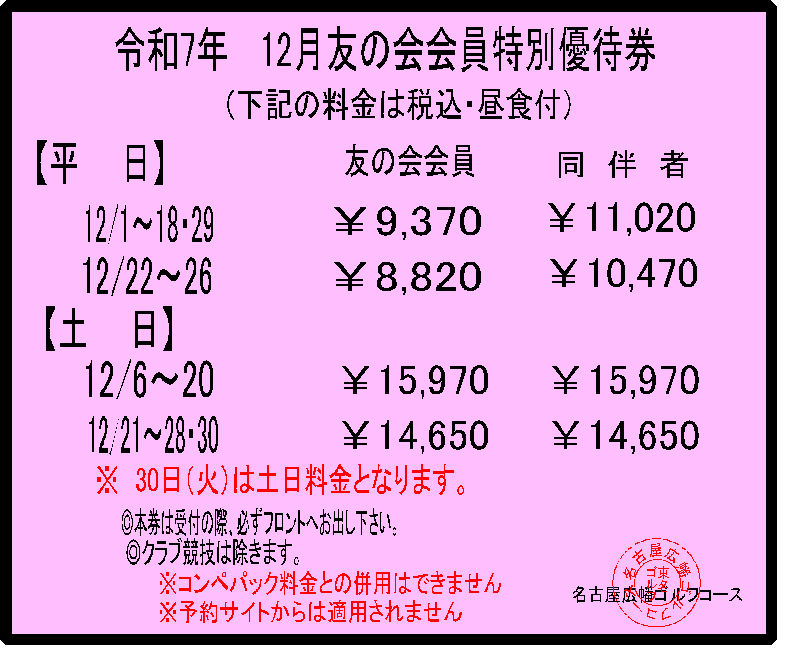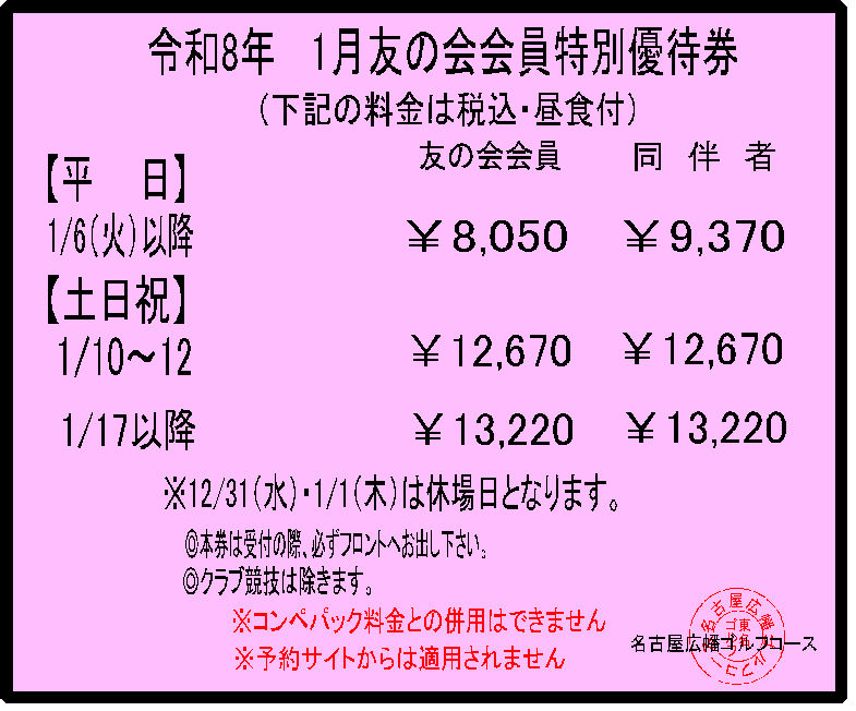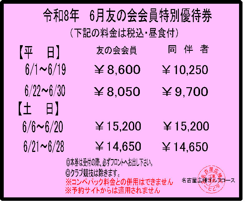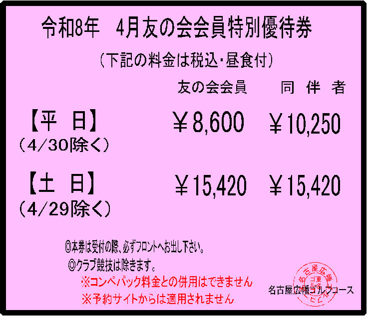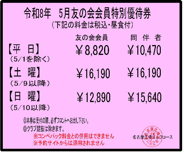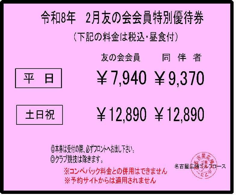 当ゴルフコースでは毎月お得な割引優待券を掲載しております。